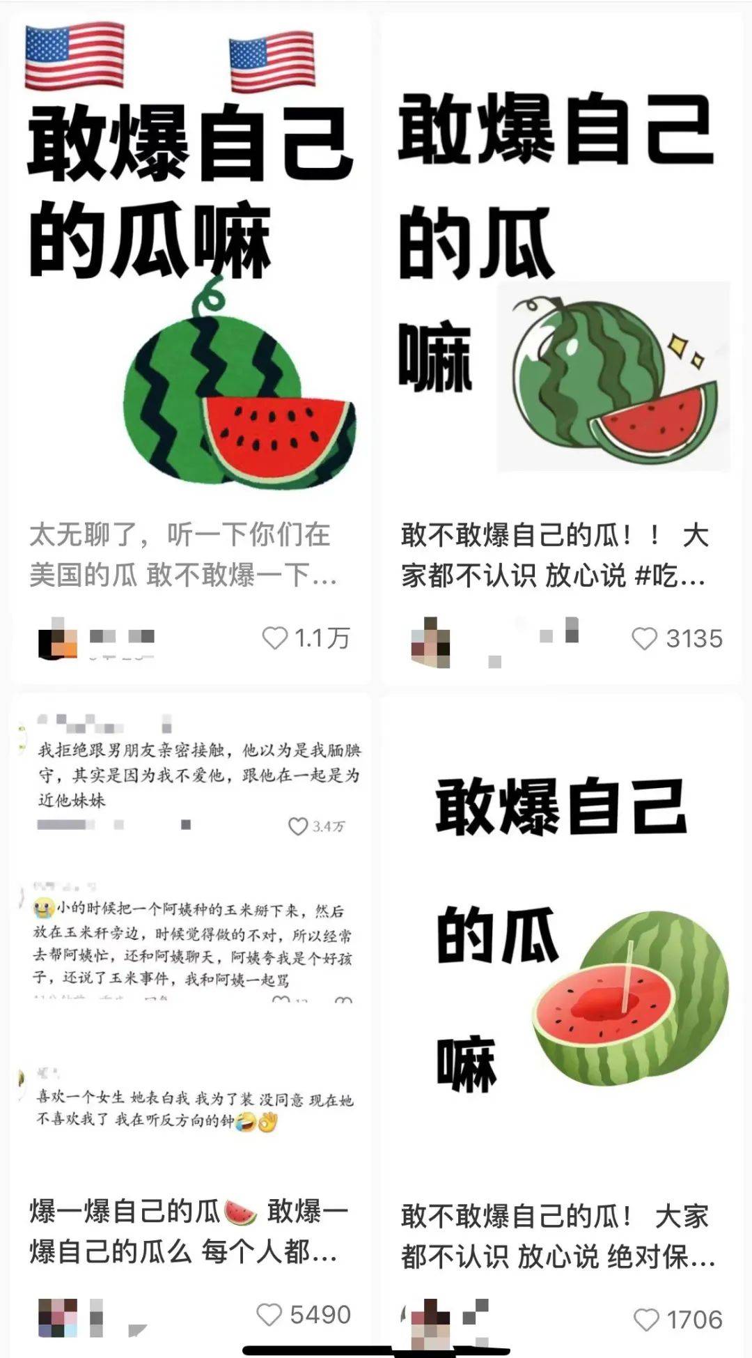只须用小红书自带封面,编辑一张西瓜图,瓜就从四面八方赶来了:黑助男人爱上我,我差点成压寨夫人;正在某相交app上刷到我妈;开黄腔聊男欢女爱那些事…。。。